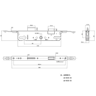 新款铝合金对开门锁体/ 35双向多点锁体/ 高级不锈钢传动锁盒/ 门锁LB-002S-35