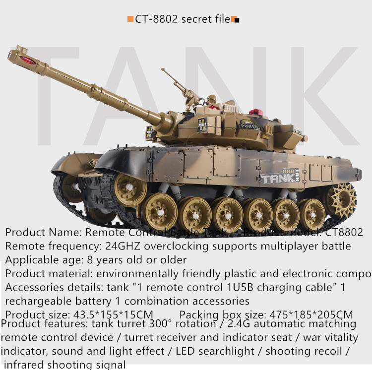 大型充电对战坦克车玩具四通遥控车越野履带式遥控车坦克男孩玩具8802
