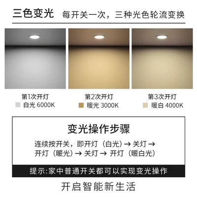 筒灯led三色变光天花灯2.5寸6W嵌入式客厅家用过道孔射灯