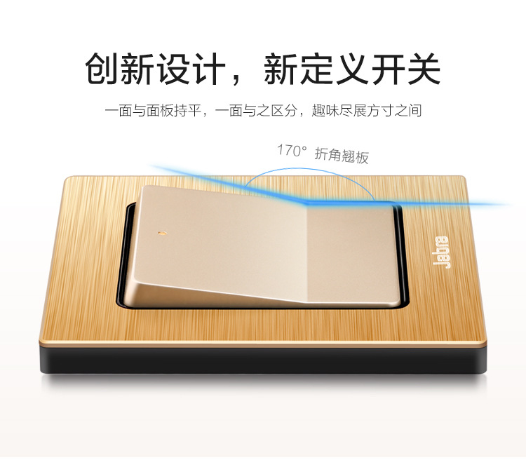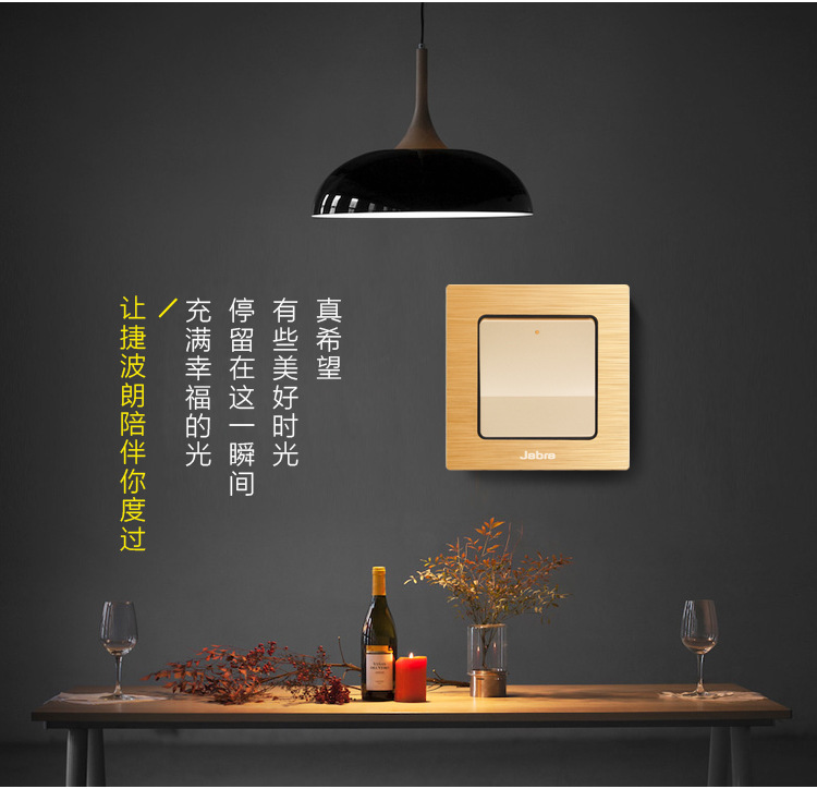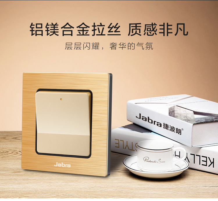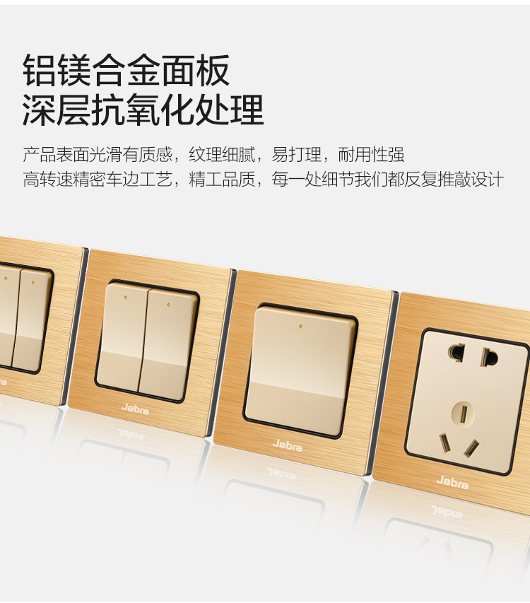 捷波朗86型香槟金拉丝面板家用墙壁开关插座五孔插座二三插电源
