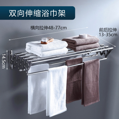 新品不锈钢浴巾架阳台卫生间浴室置物架活动伸缩折叠毛巾架晾衣架