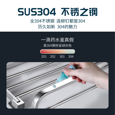 304不锈钢折叠浴巾架浴室不锈钢毛巾架收纳架免打孔多功能置物架