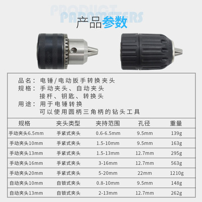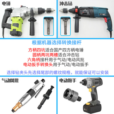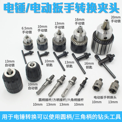 钻夹头套装 电锤配件冲击钻电动扳手转换手电钻方柄圆柄接杆自紧