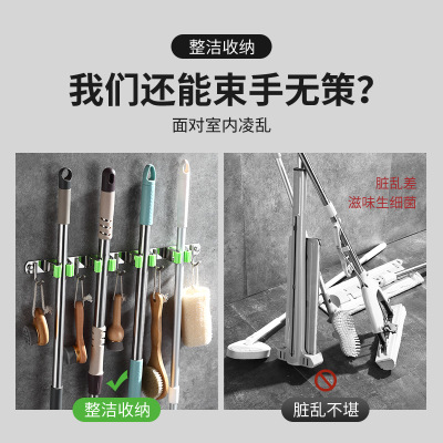 新款不锈钢拖把架免打孔多功能拖把挂钩卫生间扫把收纳架置物架