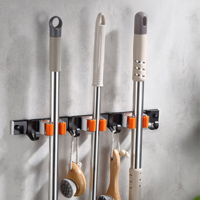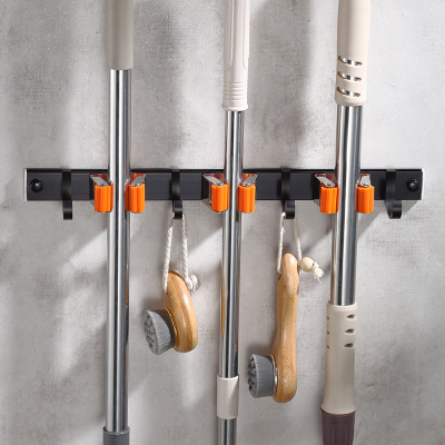 太空铝拖把架免钉款拖把挂架带钩扫把架拖把夹挂钩浴室五金挂件