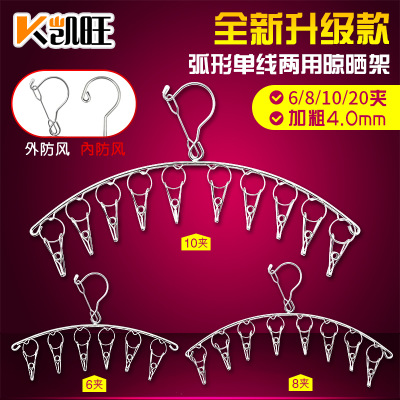 凯旺不锈钢袜架弧形衣架8夹晒架晾晒架不锈钢夹子防风衣架挂衣架
