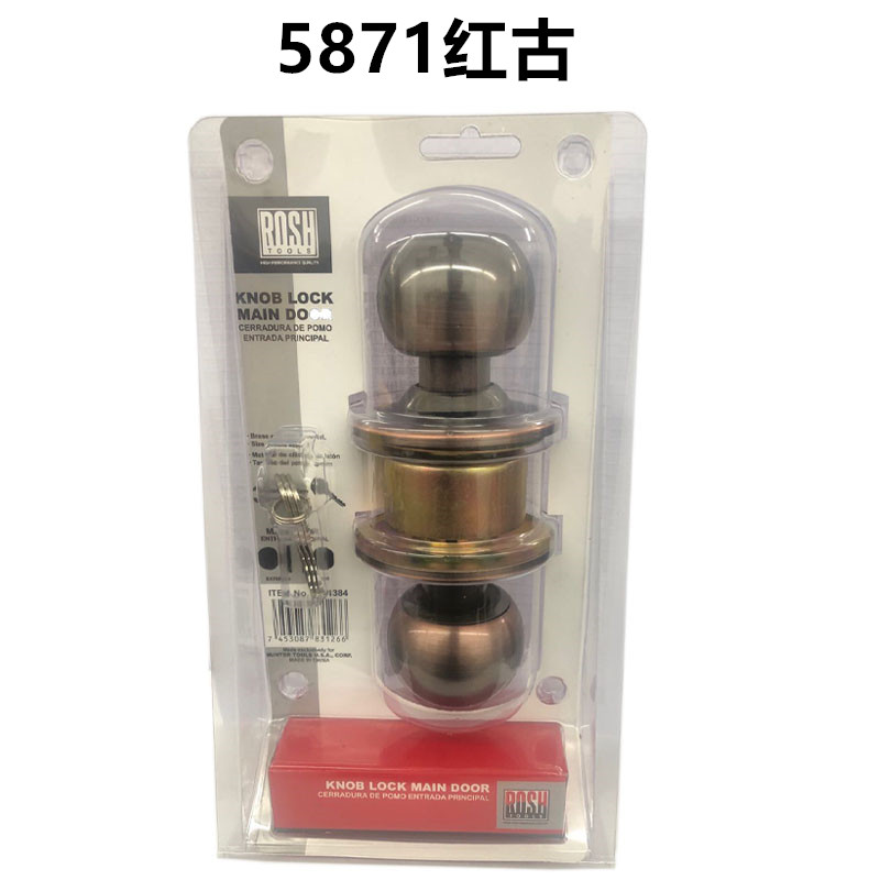 587AC Red Ancient Stainless Steel Vertical Ball Lock Interior Door Lock Bathroom Lock Room Door Lock Exterior Door Lock Ball Lock