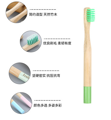 Round handle soft bamboo toothbrush children adult bamboo charcoal environmental protection toothbrush natural bamboo wood toothbrush set