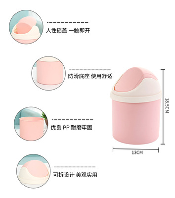 Factory direct rocking lid mini trash can desktop plastic paper basket with lid home office small storage bin