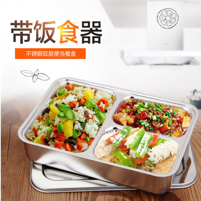Direct selling 304 stainless steel square lunch box with lid divided grid lunch box. Canteen lunch box heat insulation for adults. Lunch box. Bento box