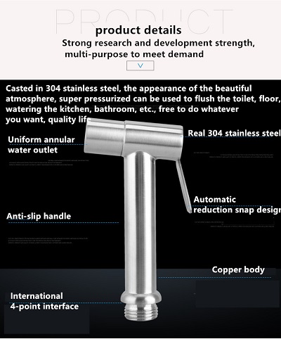 Bathroom Shower Set 304 Stainless Steel Brushed Bidet Set Threaded Shower Hose Women's Cleaner 1.5 Meters