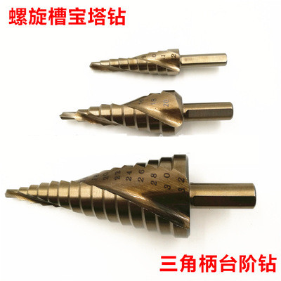 Triangular shank spiral groove pagoda drill bit. Step drill. Step drill steel plate iron plate aluminum plate hole opener drilling 4-32