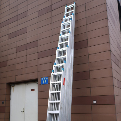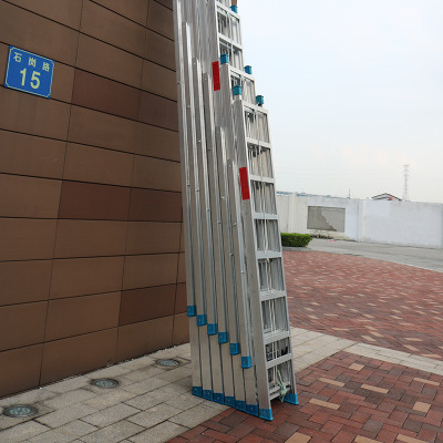 Unilateral fire aluminum ladder double side foot reinforcement 3.0mm aluminum alloy ladder A type two-section rope lifting elevator