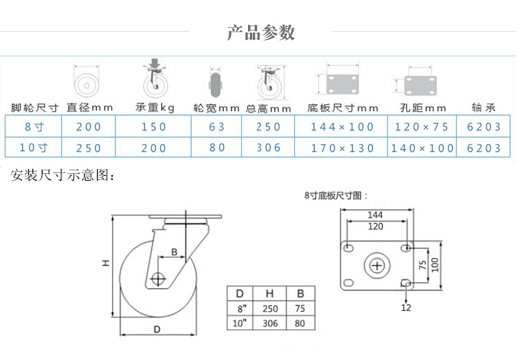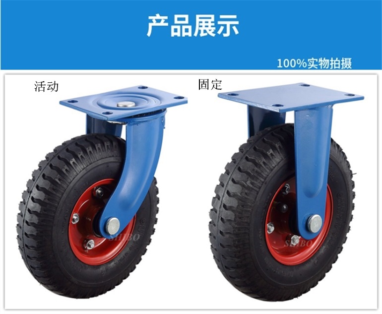 Heavy Duty Silent Inflatable Wheel Caster 8 inch Inflatable Wheel 10 Inch Universal Wheel Industrial Caster Rubber Silent Heavy Duty Wheel Double Bearing Resistance