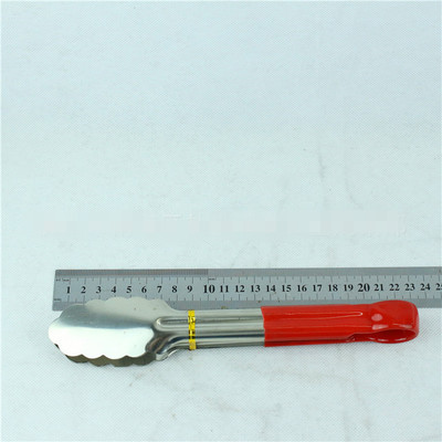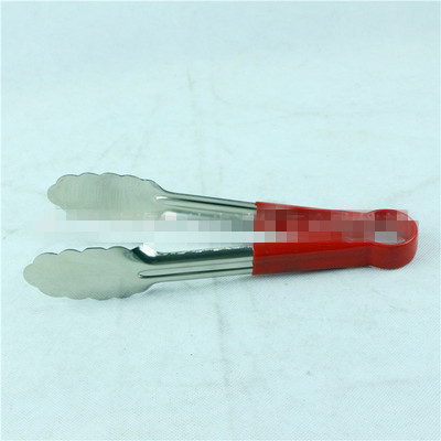 Factory direct sale 9-inch red soft rubber bread tongs, barbecue food tongs, multi-function electroplated metal food tongs