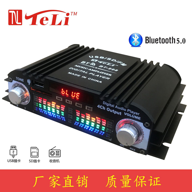 Bluetooth small power amplifier BT-998 card reader USB with FM radio U disk card reader 12V4 channel car amplifier power amplifier