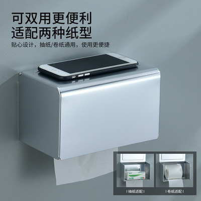 Space aluminum thickened tissue box, toilet waterproof paper box roll paper, wall-mounted hotel bathroom toilet paper box