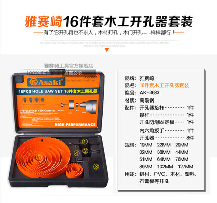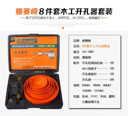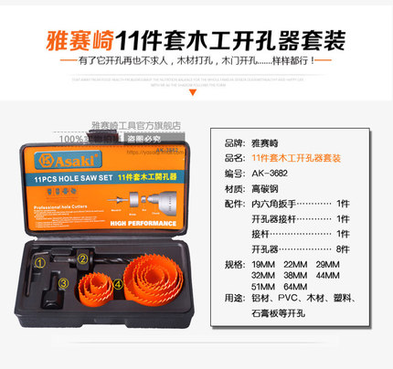 Yasaiqi woodworking hole opener. Downlight electric drill bit reaming kit pvc plastic wood gypsum board drilling tool. Hole opener. Opener 3681 3682 3683