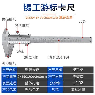 Tin work vernier caliper high carbon steel high precision 0-150mm 200/300mm measuring depth height vernier caliper