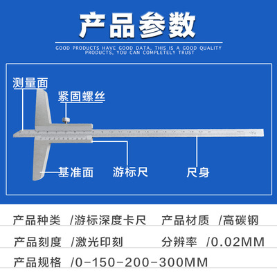 Vernier depth gauge 0-150-200-300mm depth step measurement tool accuracy 0.02mm depth gauge