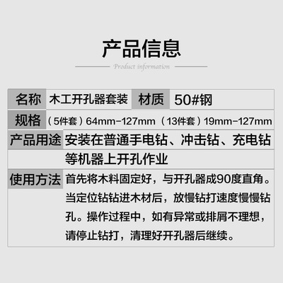 Woodworking Hole Reamer Drill Bit Set Gypsum Board PVC Wood 5 Pieces 13 Piece Woodworking Hole Saw Hole Set
