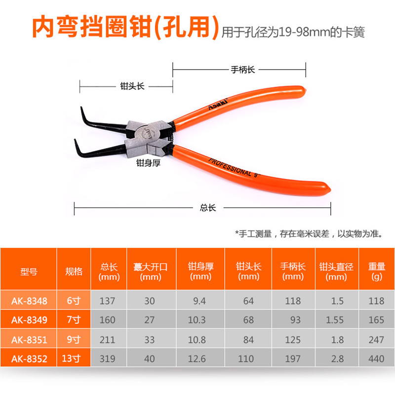 Yasaiqi Inward bending retaining ring pliers Multifunctional retaining ring pliers 7-inch circlip pliers 8348-8352 Internal and external dual-purpose multi-specification snap ring spring pliers