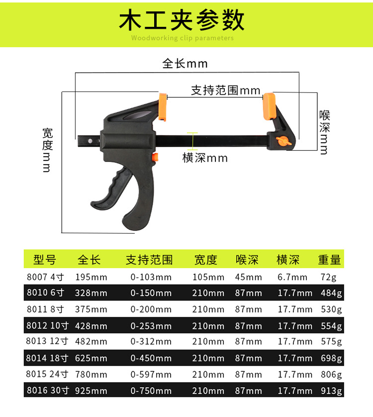 F-clamp Woodworking fixed fixture clamp. Fast plank clamp. Sub-heavy jigsaw clamp tool. Woodworking clamp