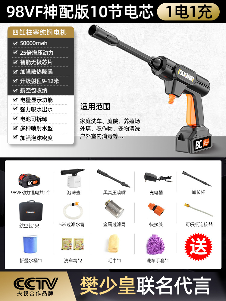 Concerned about the high-pressure car wash water gun. Wireless car wash locomotive with home portable charging. High-pressure water gun. Lithium battery water pump.