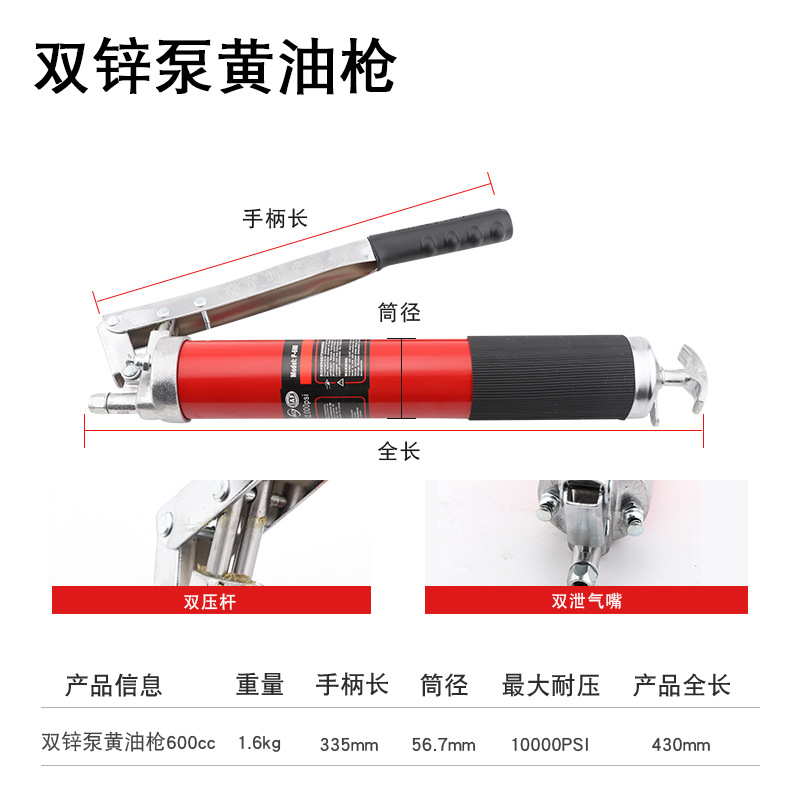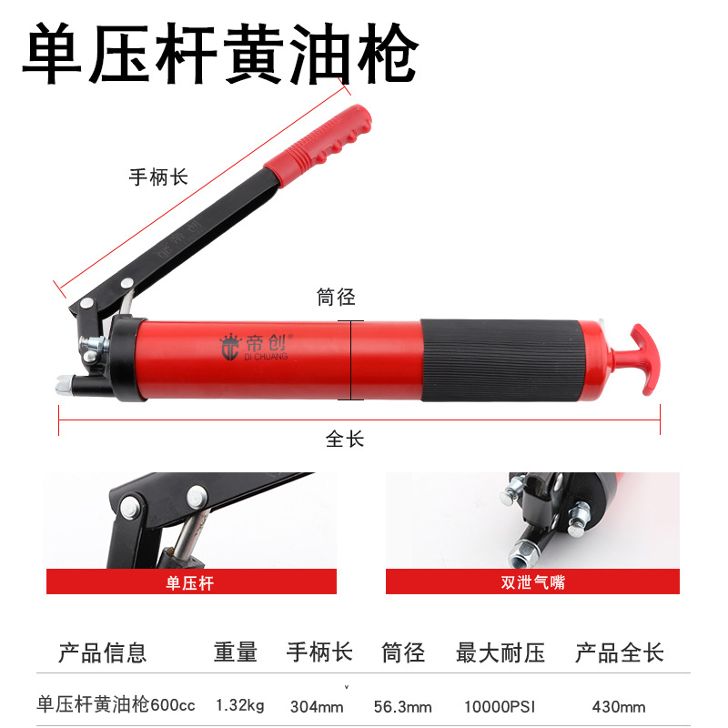 Grease gun Butter gun 500cc 600cc Di Chuang Hong King Kong Double Zinc Pump Double Rod Manual Grease Gun Auto Repair Oil Filling Tool Auto Repair