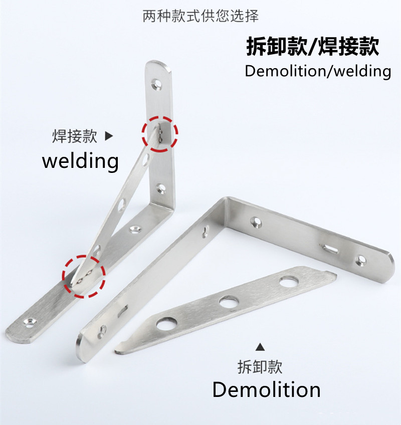 Stainless steel triangle bracket thickened wall shelf partition fixing hardware shelf bracket wall hanging wall disassembly/welding type bracket tripod