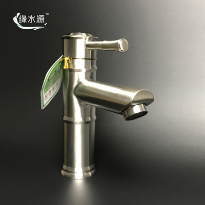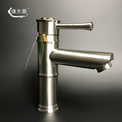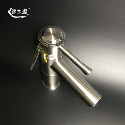 SUS304 stainless steel faucet. Vintage bamboo faucet. Bathroom single hole basin mixer. Under counter basin brushed faucet