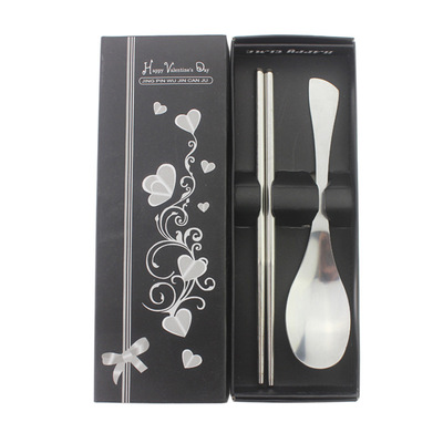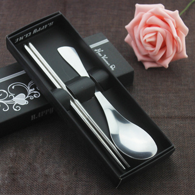 黑盒鱼尾勺便携餐具套装 筷子 餐具 婚庆回礼商务礼品 不锈钢创意餐具两件套