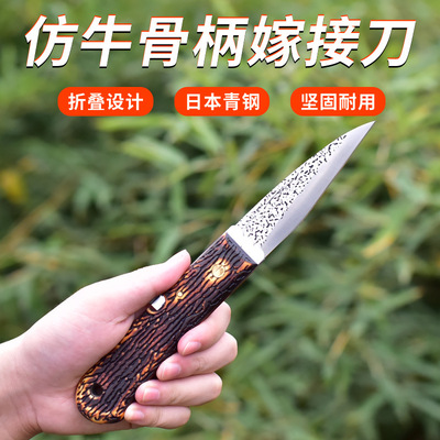 Folding grafting knife with imitation cattle bone handle. Alloy steel fruit tree seedling grafting knife. Fruit tree grafting knife. Budding knife