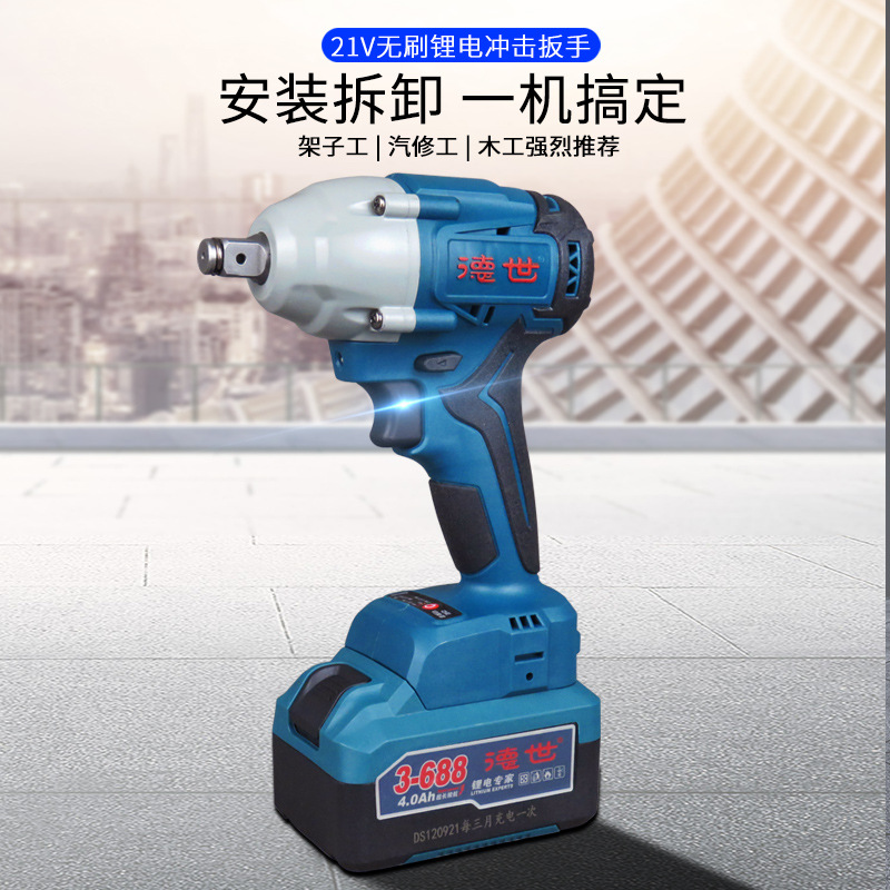 Deshi Power Tools Brushless High Power 688 Lithium Electric Wrench Woodworking Shelf Worker Wind Gun Auto Repair Lithium Electric Wrench Electric Wrench Brushless Lithium Battery Charging Wrench Impac