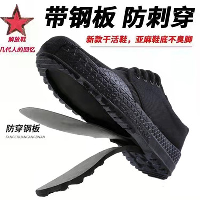 Anti-puncture liberation shoes men. steel plate. canvas rubber shoes. construction site labor work labor insurance shoes