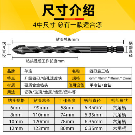 Lengthened hexagonal twist cross drill electric drill bench drill drilling bit carbide hexagonal thread ten Bit bit
