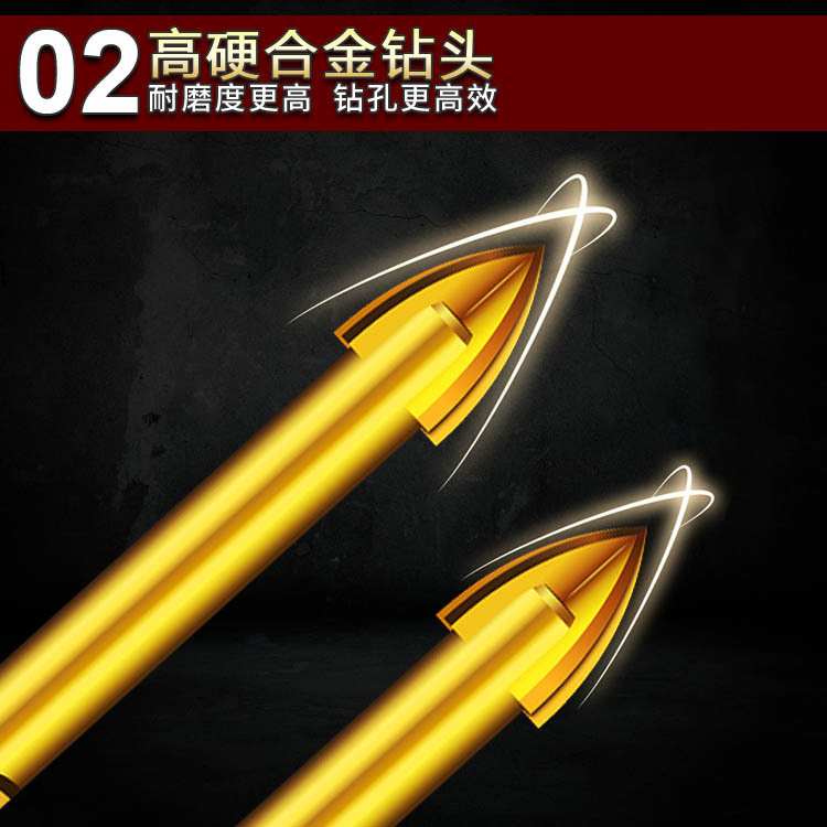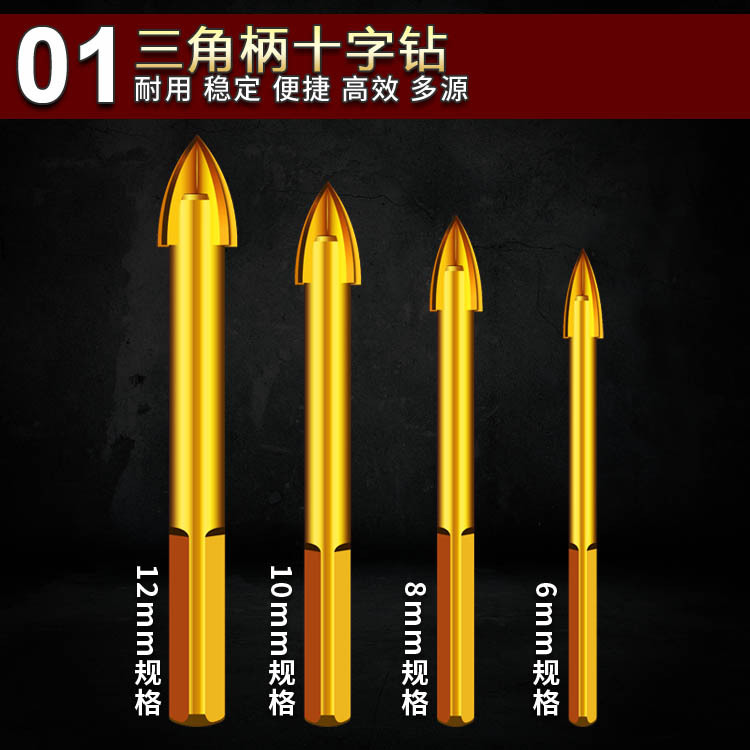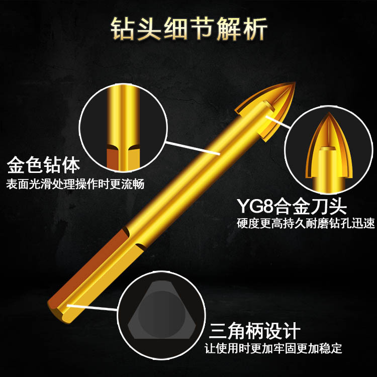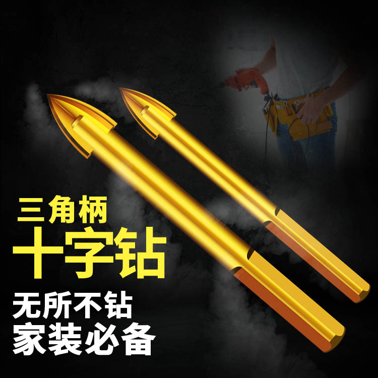 Alloy four-blade cross drill triangular shank tile hard punching bit concrete bit glass tip drill