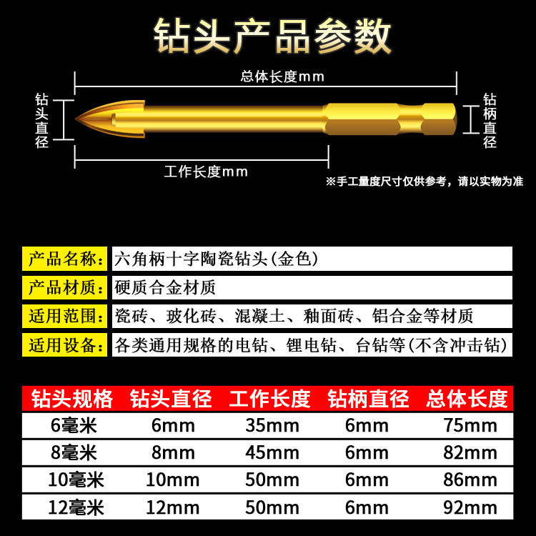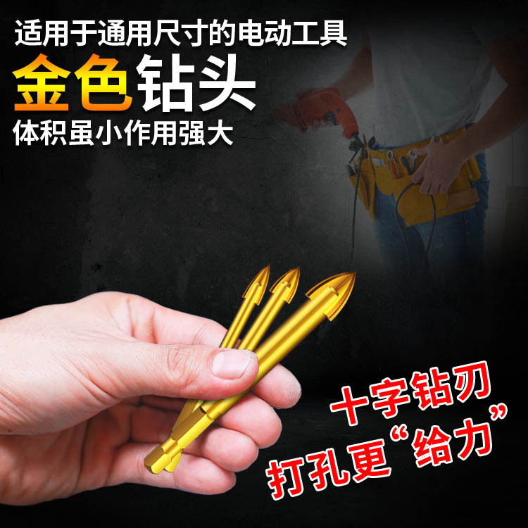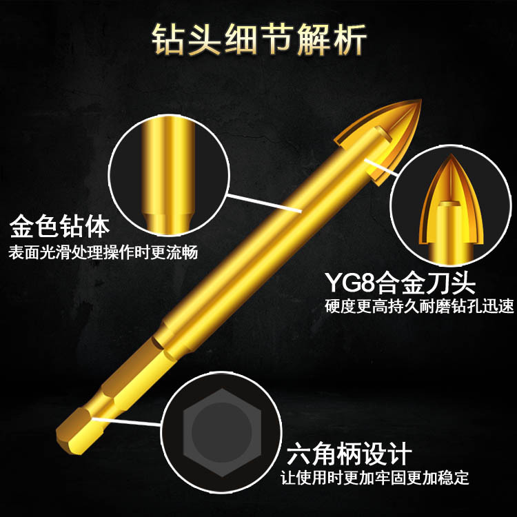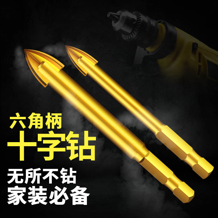 Multifunctional alloy cross drill hex shank glass hole opener ceramic concrete impact drill bit sleeve loading