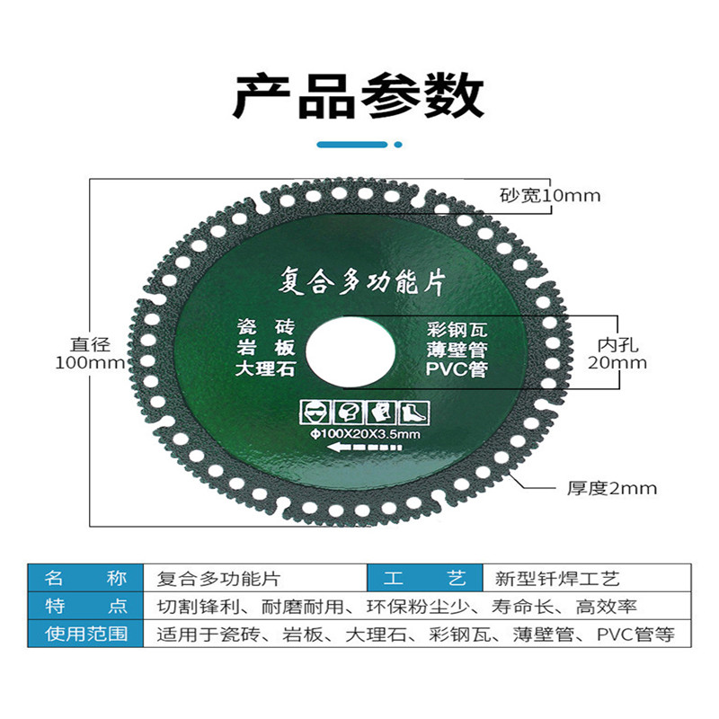 Composite multifunctional cutting piece ceramic tile rock sheet slice marble color steel tile metal Angle grinder saw blade wholesale