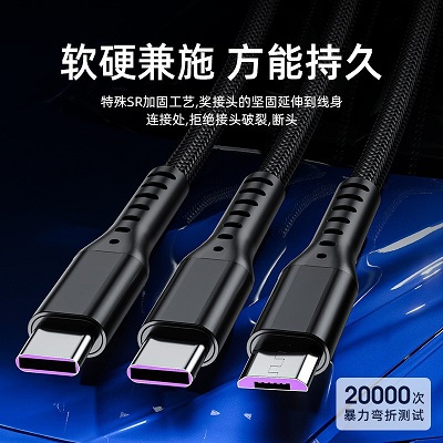66w fishing net woven tow three charging cable. Super Fast Charge data cable for Android typec 3-in-1 charger. Data cable
