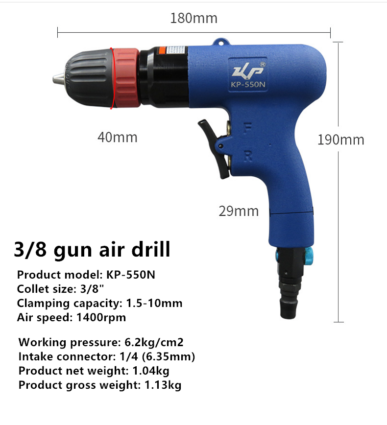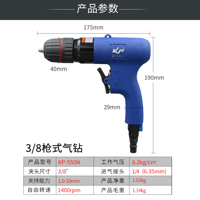 10mm pneumatic gun pneumatic drill self-locking pneumatic drill 3/8 pneumatic drilling pneumatic drill pistol drill KP-550N