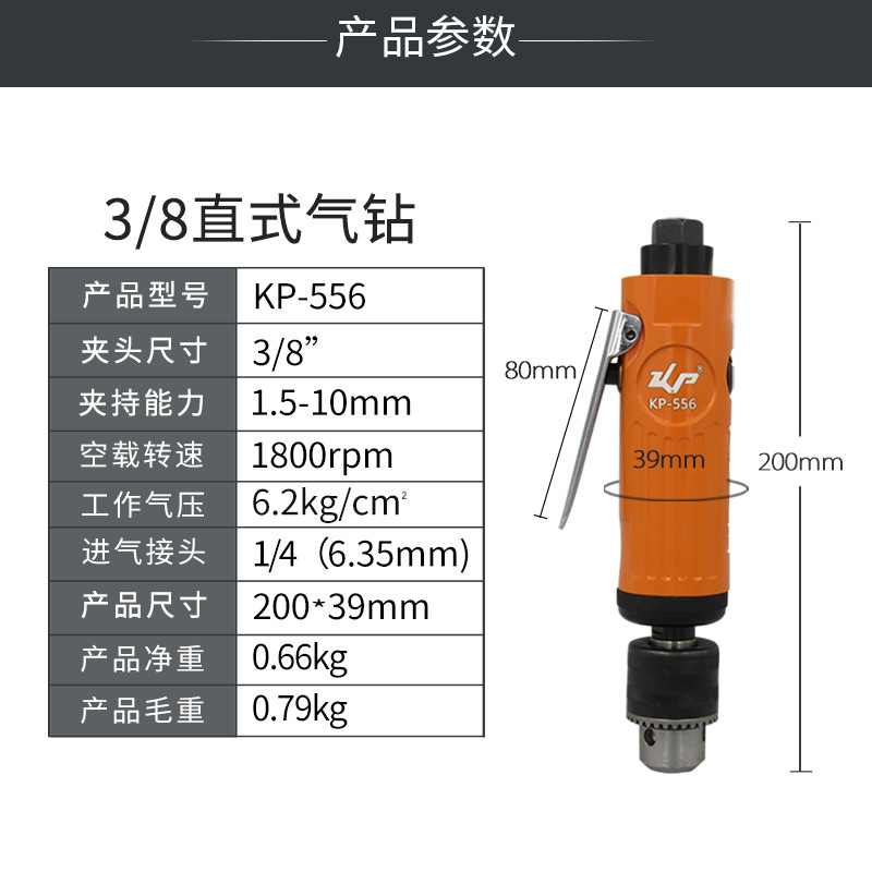 KBA 3/8 straight air drill 10mm industrial grade pneumatic drill high speed air drill straight handle pneumatic drill hole machine tool KP-556