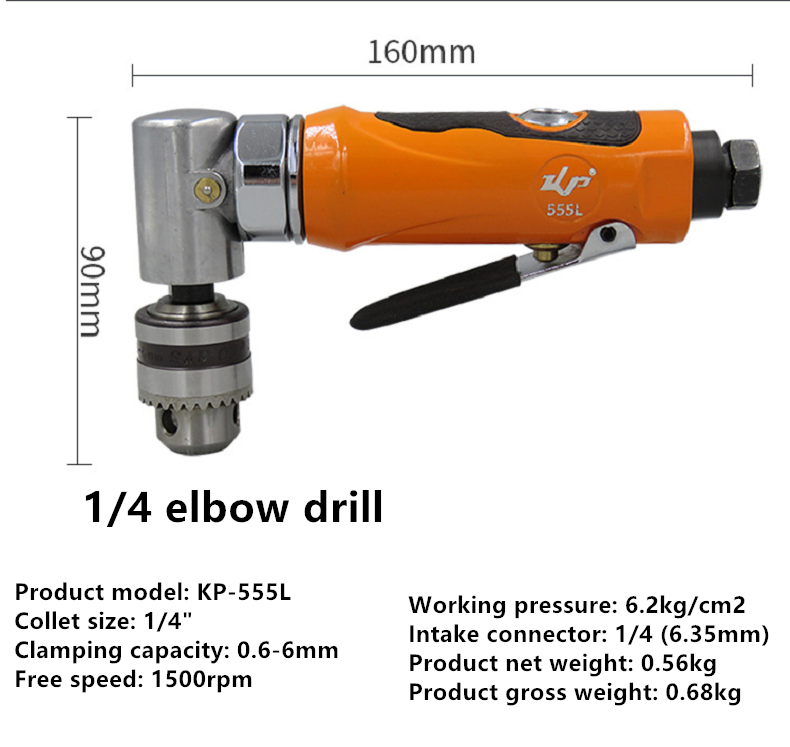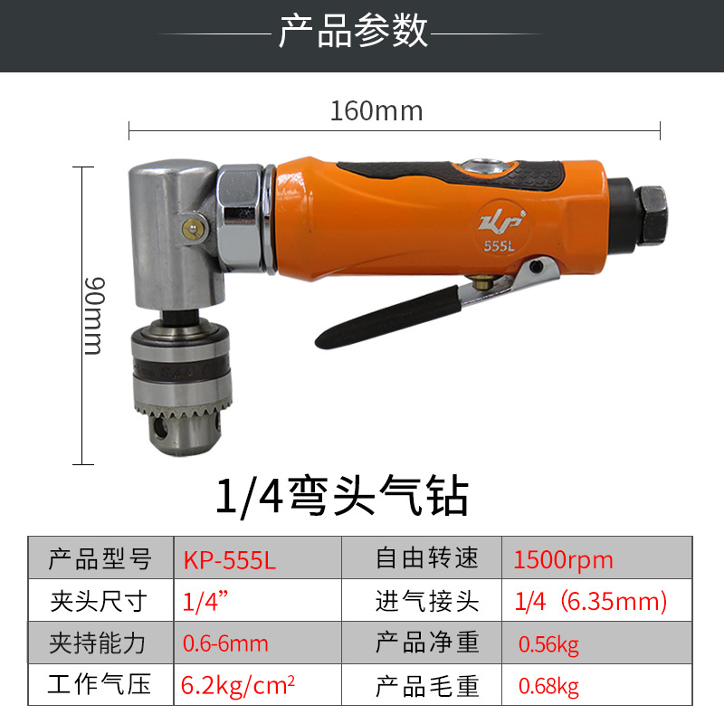 KBA Elbow Air Drill 90°1/4 Pneumatic Drill 6mm Wind Drill Angle Wind Drill Drill KP-555L