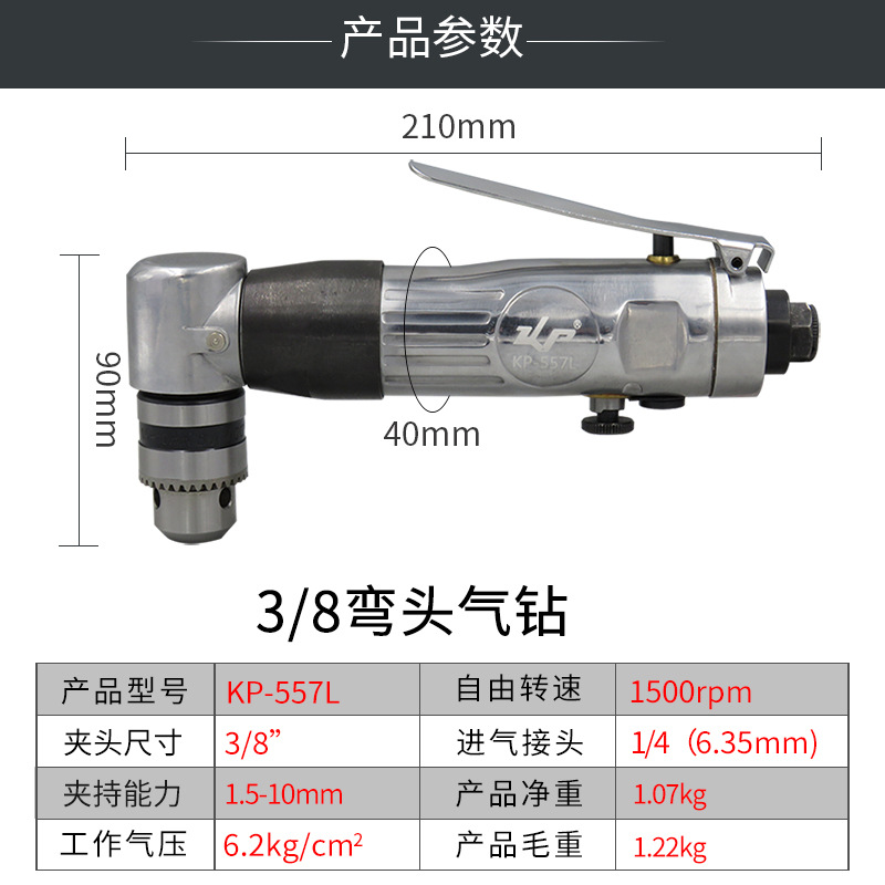 KBA Pneumatic Drill Tool Elbow Air Drill Industrial Grade Pneumatic Drill Powerful Angle Drilling Machine 90 Degrees Air Drill Tapping Machine KP-557L