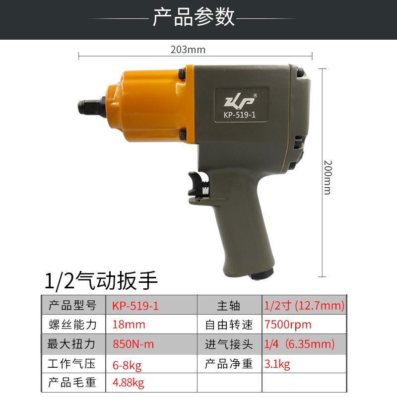 KBA 1/2 double ring hitting pneumatic wrench. hardware tools. Pneumatic tools. Fitted with pneumatic wrench. tool. Wind-driven wrench auto repair small wind gun KP-519-1