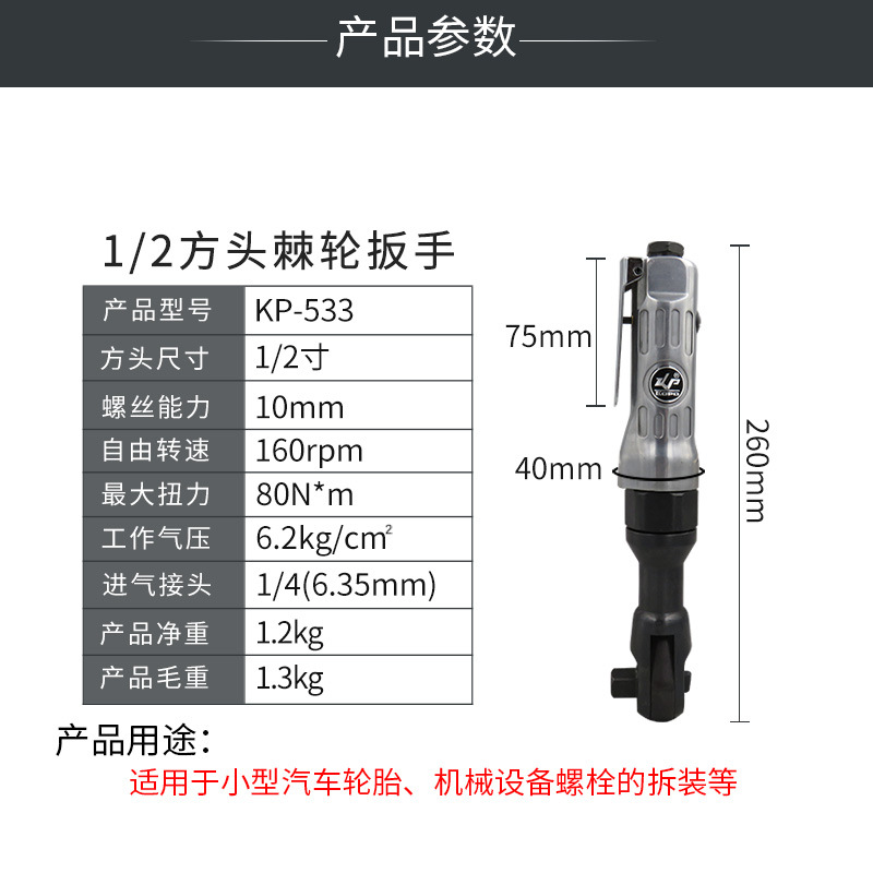 KBA pneumatic ratchet wrench 1/2 pneumatic. Wrench perforated auto repair assembly. Wrench hardware tools. Pneumatic tools KP-533