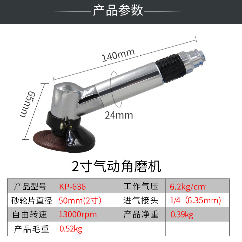 Mini 2 inch pneumatic angle grinder. Industrial grade grinding machine. 50mm pneumatic turbine. Speed control grinding machine KP-636