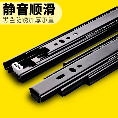 4510 black silent buffer drawer track. Drawer slide. Drawer rails. Three sections of steel ball slide rail cabinet rails. lock