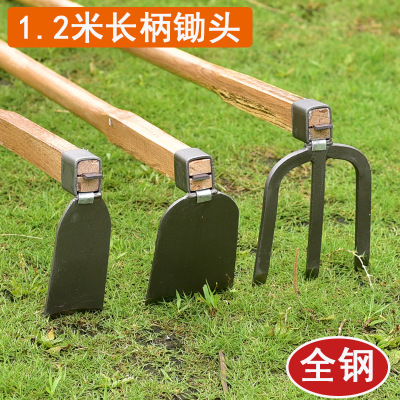All-steel medium-sized hoe, agricultural weeding claw hoe, excavating large hoe, long-handled hoe, wooden handle high carbon steel hoe, weeding and soiling claws, 1.2 m hoe, claw hoe, taro