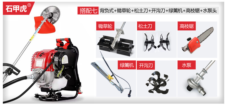 Four-stroke backpack standard + weeding wheel + loose soil knife + ditch knife